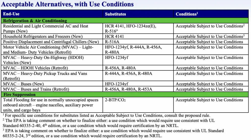 On October 24, 2025, the U.S. EPA proposed a rule under the Significant New Alternatives Policy (SNAP) which proposes the following: